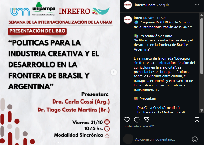 Este post foi publicado originalmente na página oficial da INREFRO (Unam) no Instagram. Disponível em: https://www.instagram.com/p/DQcyYgmAU4E/.