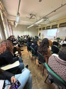 Durante a palestra, os pesquisadores compartilharam resultados parciais com foco na região Brasil–Uruguai. Foram apresentados dados sobre o perfil do mercado criativo, o funcionamento das cadeias produtivas locais e o potencial do empreendedorismo cultural nesse território binacional. O diagnóstico preliminar revela tanto brechas estruturais, como a informalidade e a baixa integração setorial, quanto oportunidades emergentes, impulsionadas pela circulação transfronteiriça, pela digitalização e pela diversidade cultural da região.