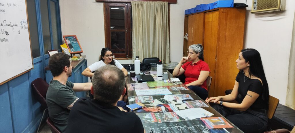 Na semana seguinte, entre os dias 19 e 20 de novembro, em Posadas, na Argentina, o grupo de pesquisadores reuniu-se na sede do Programa de Investigaciones Interdisciplinarias sobre Regiones de Frontera- INREFRO, com os docentes Diana Mabel Arellano, Carla Cossi, Anabel Catalina e Herman Cazzaniga, todos vinculados à Universidade Nacional de Misiones (UNaM). O encontro teve como objetivo planejar as atividades de 2025, que incluirão um evento científico na cidade fronteiriça brasileira de São Borja, um workshop de encerramento das atividades na Argentina e o lançamento de um terceiro livro, escrito e publicado em parceria com a instituição argentina.