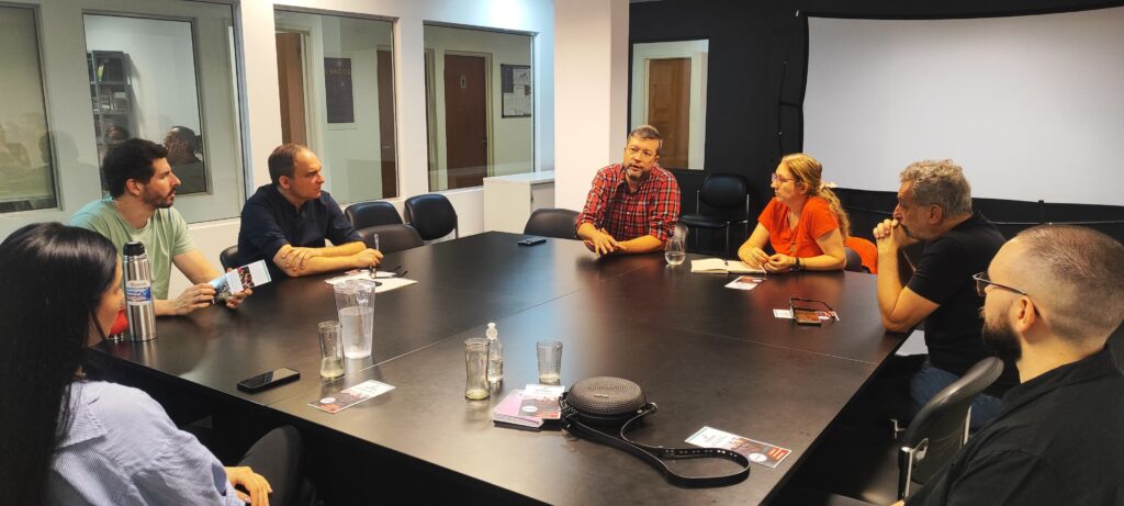 O encontro contou com a presença dos professores Angélica Seguí e Federico Lazzarini Gil, da UTEC, além dos pesquisadores Tiago Costa Martins (Unipampa) e Victor da Silva Oliveira (Universidade Federal do Sul e Sudeste do Pará – Unifesspa). O grupo discutiu as possibilidades de articulação de uma política conjunta voltada à Indústria Criativa na região de fronteira, com foco na valorização da cultura, da identidade e das expressões regionais.