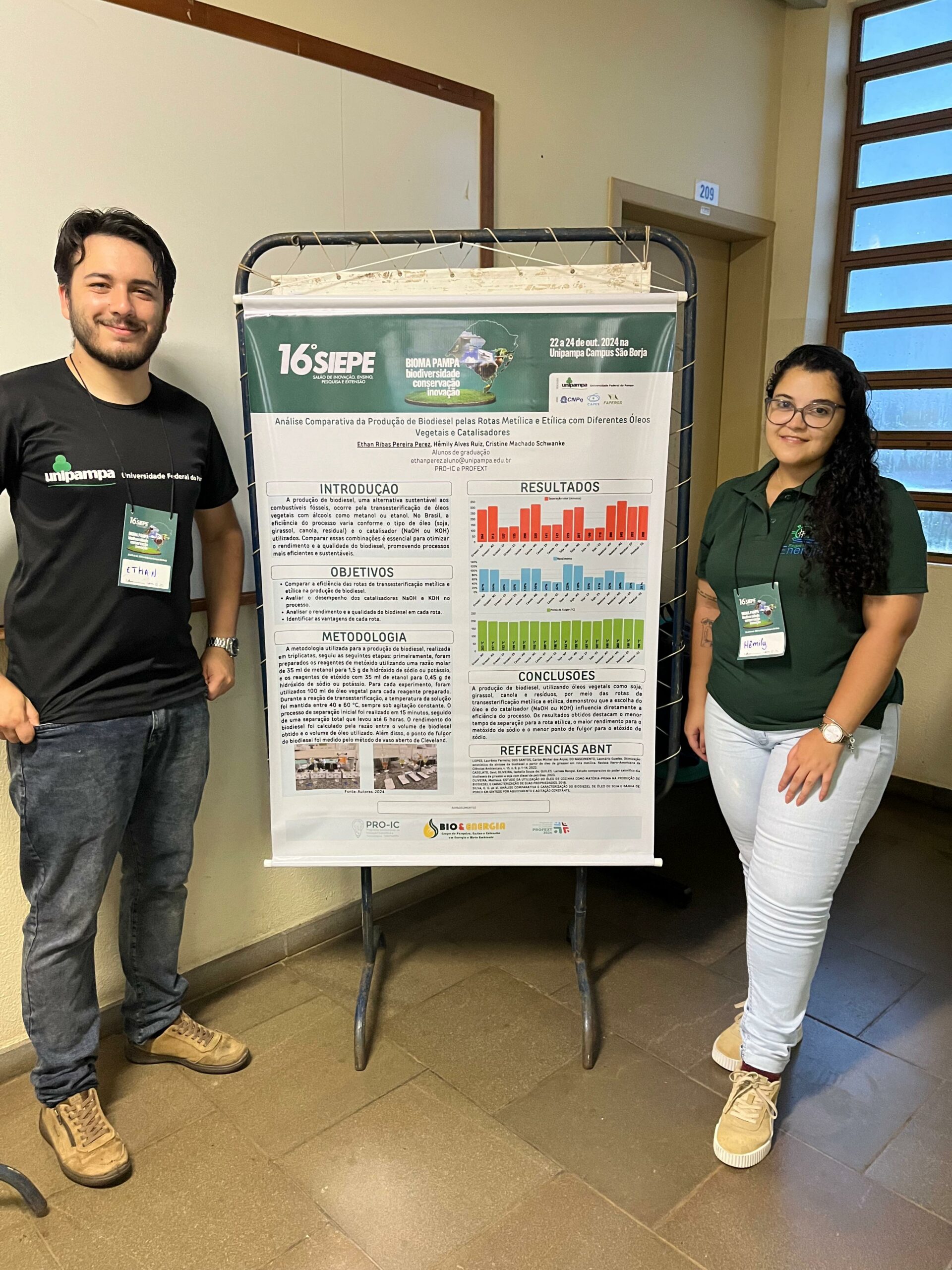O 16º Salão Internacional de Ensino, Pesquisa e Extensão (SIEPE), da Unipampa, iniciou na terça-feira, 22, no Campus São Borja. Na manhã desta quarta-feira, 24, foi a vez dos bolsistas Ethan Perez e Hêmily Ruiz apresentarem os resultados do seu trabalho.